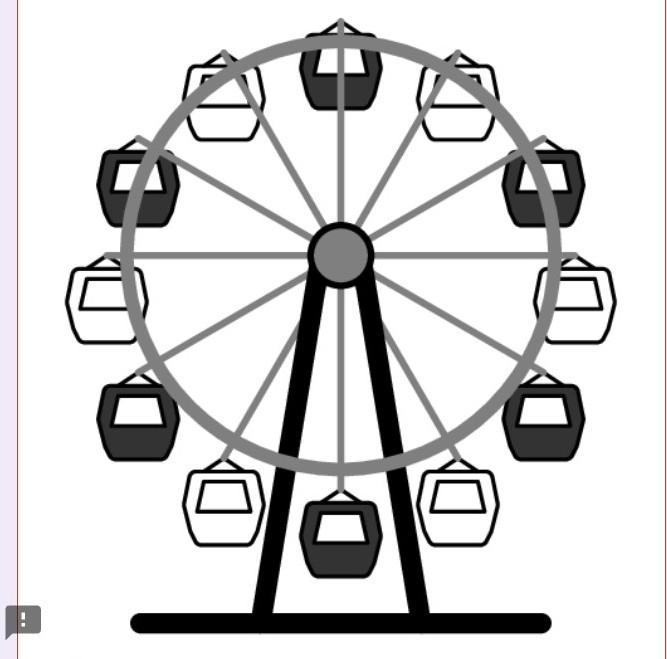 На какую часть полного круга должен повернуть Феррис колесо, чтобы белая кабинка оказалась на вершине?, срочно нужно на конкурс