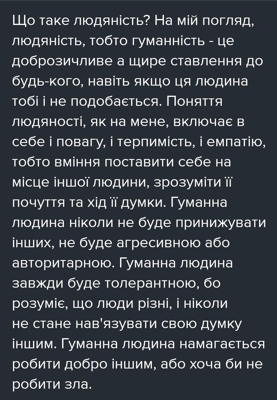12. Висловіть власні міркування з приводу того, що таке людяність (6-7 речень). Використайте різні типи речень за метою висловлювання: розповідні, питальні та спонукальні.