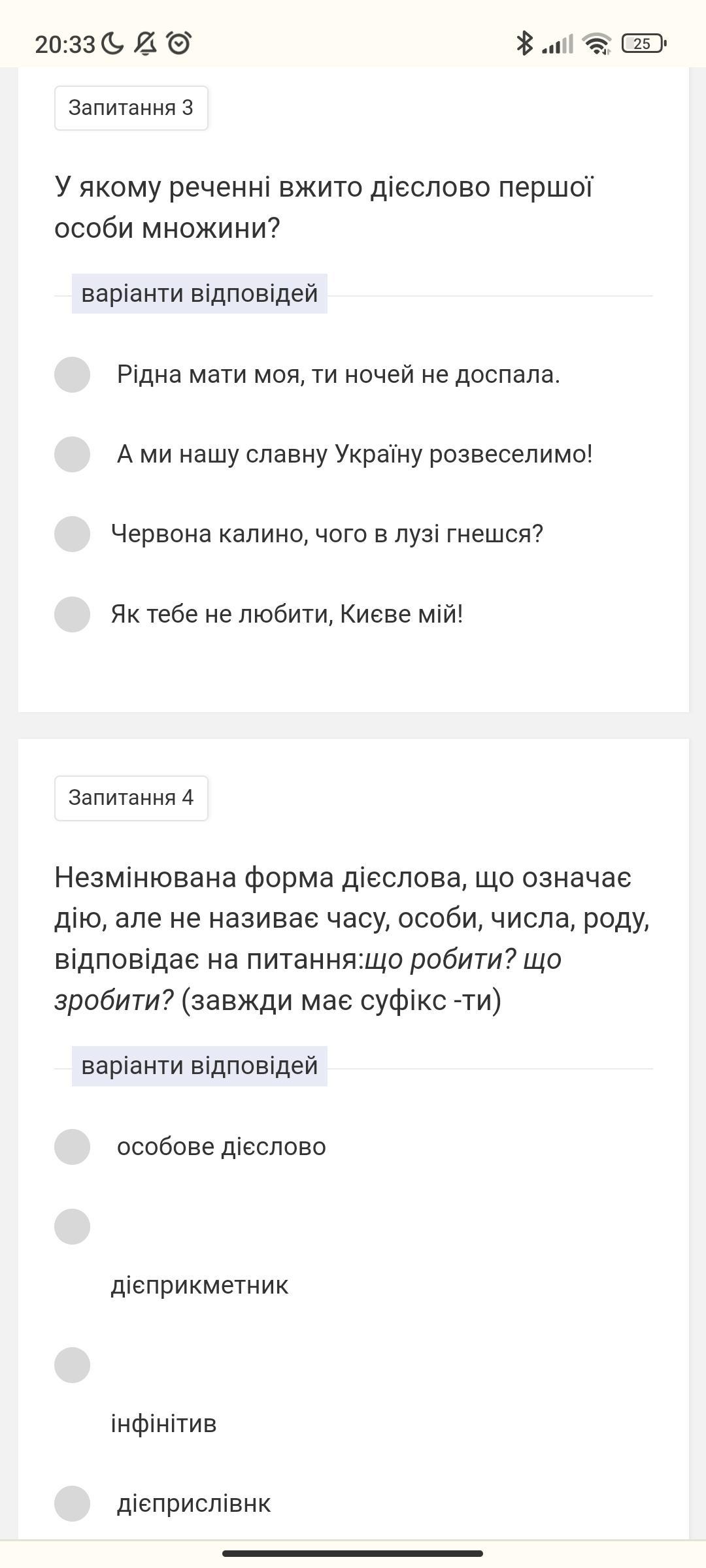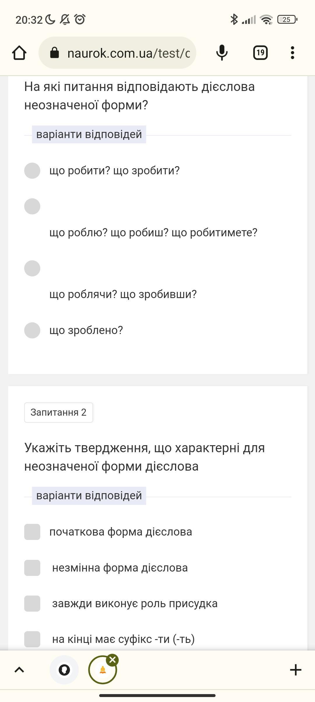 2. Неозначена форма дієслова (інфінітив) – початкова незмінна форма дієслова, що означає дію або стан предмета узагальнено, без вказівки на час, особу, рід, число.
