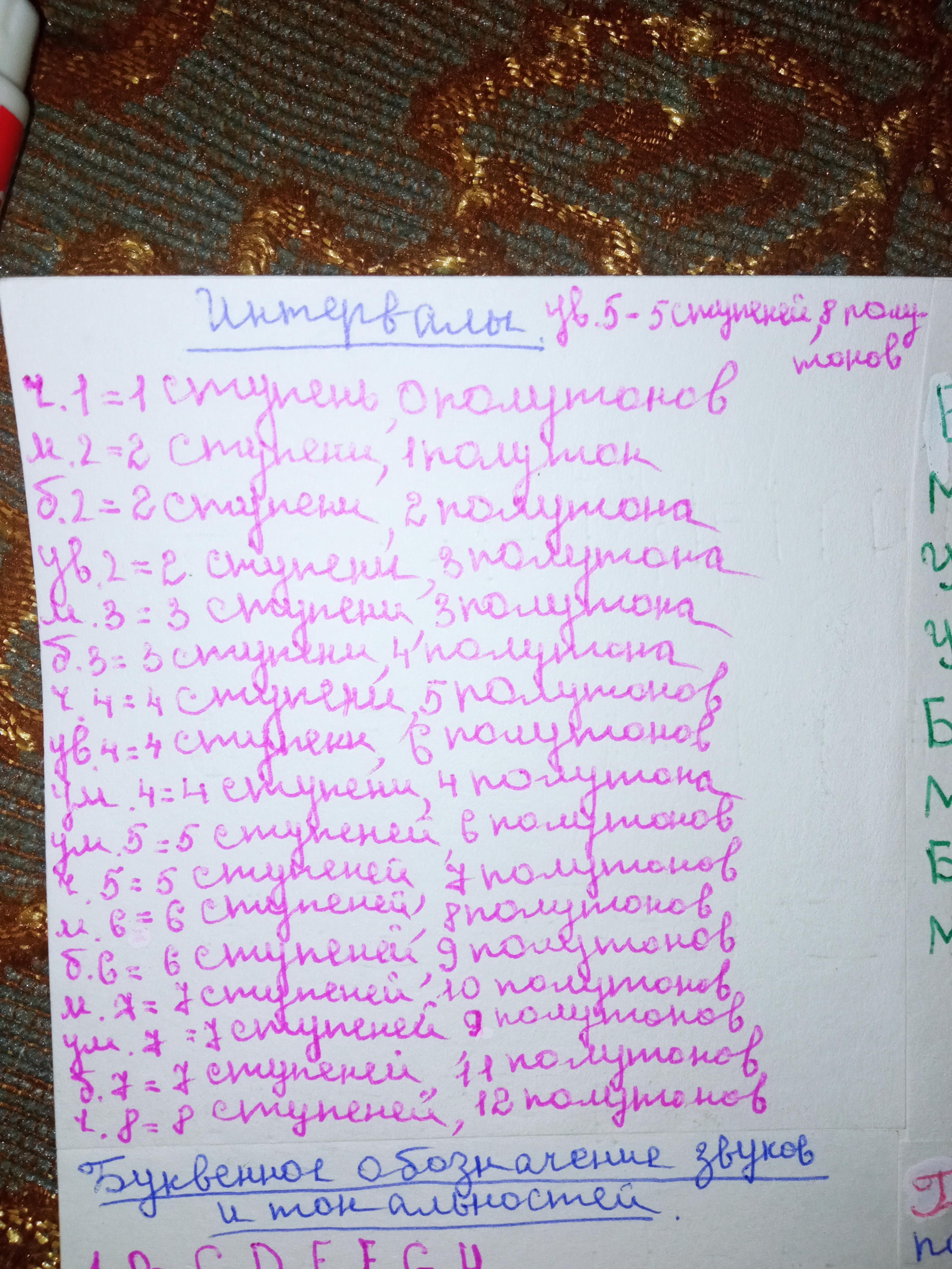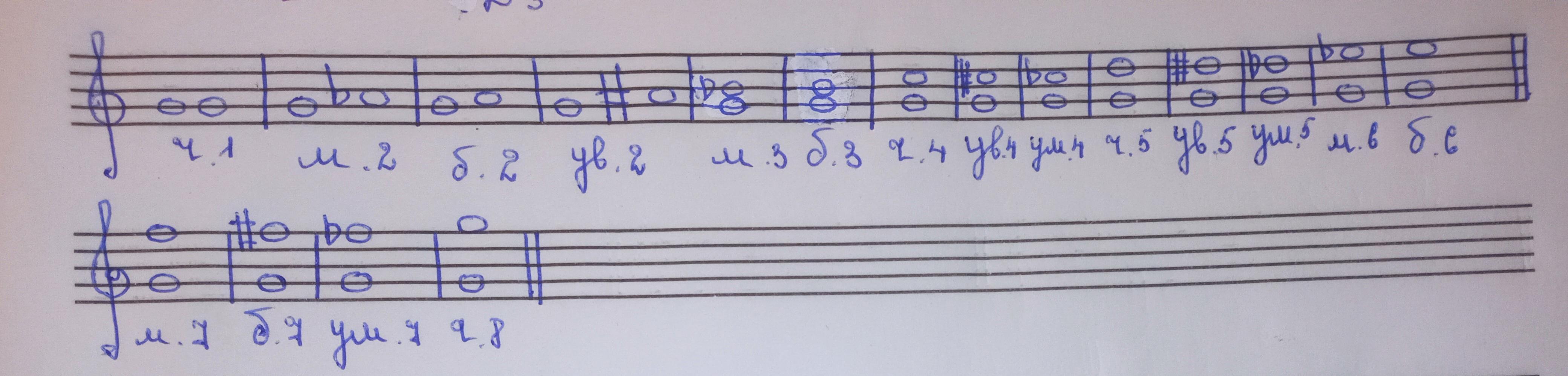 1 – прима 2 – секунда 3 – терция 4 – кварта 5 – квинта 6 – секста 7 – септима 8 – октава