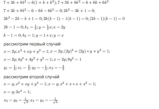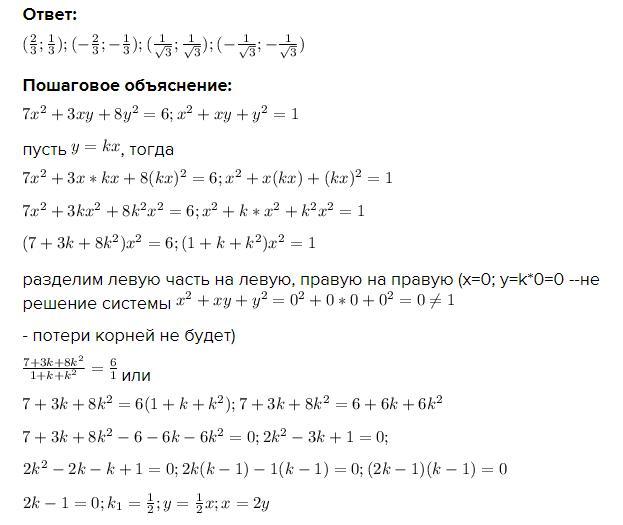 разделим левую часть на левую, правую на правую (х=0; y=k*0=0 --не решение системы