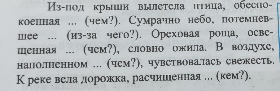 Упражнение 52. Переконструируйте предложения, добавив к одиночному причастию зависимые слова. Графически обозначьте причастные обороты.