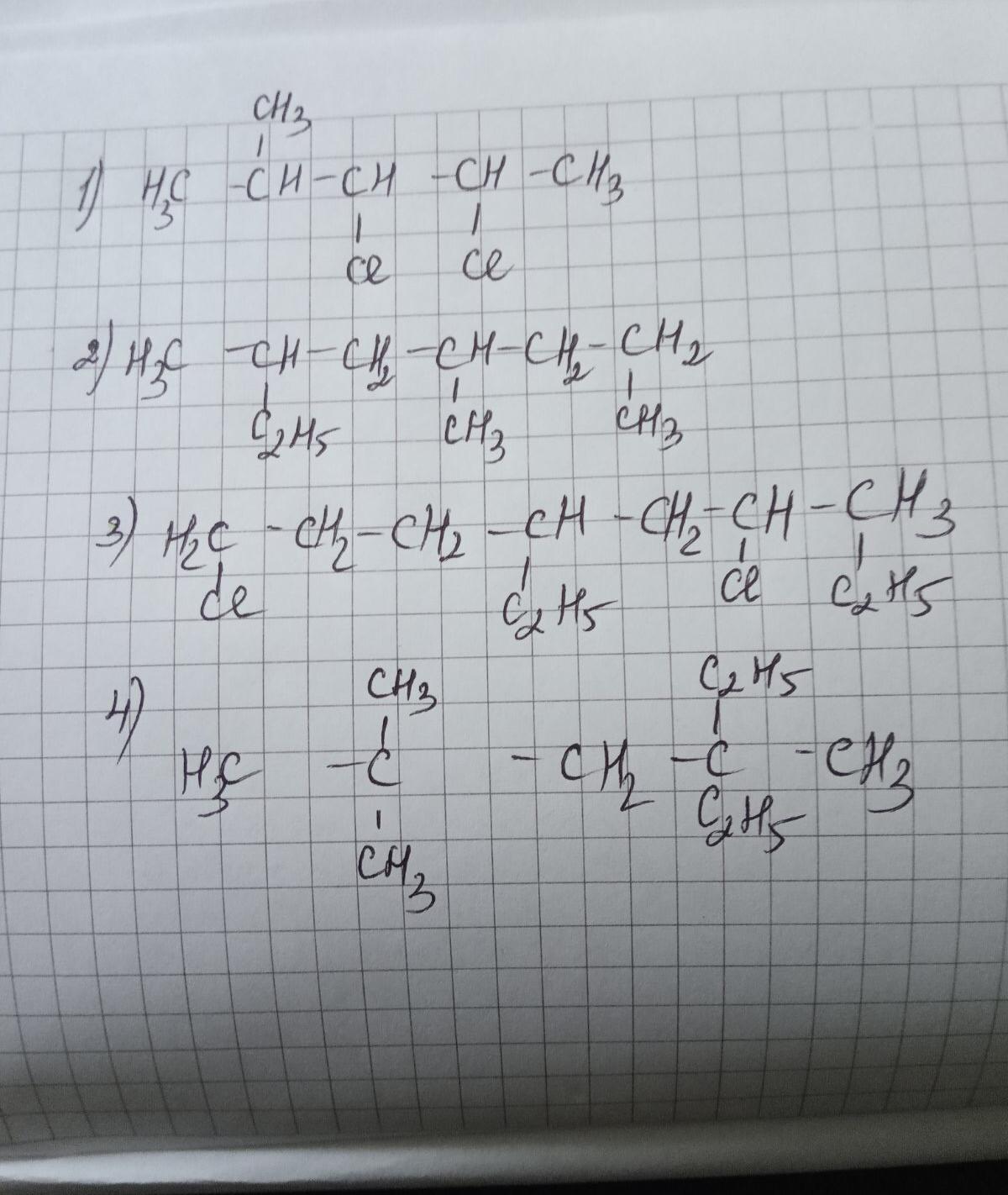1) 2-метил-3,4-дихлорпентан;