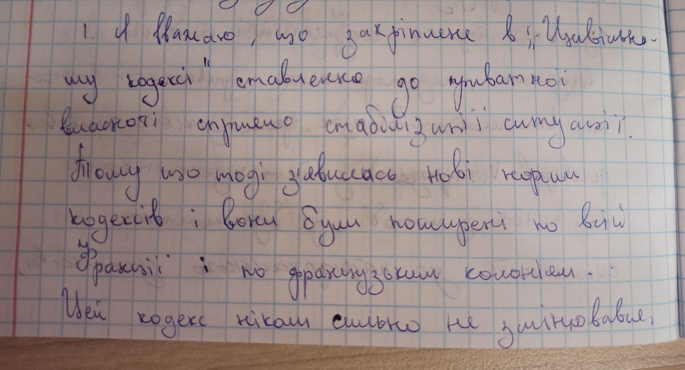 Чи можна вважати, що закріплене в «Цивільному кодексі» ставлення до приватної власності сприяло стабілізації ситуації в післяреволюційній Франції? Чому?