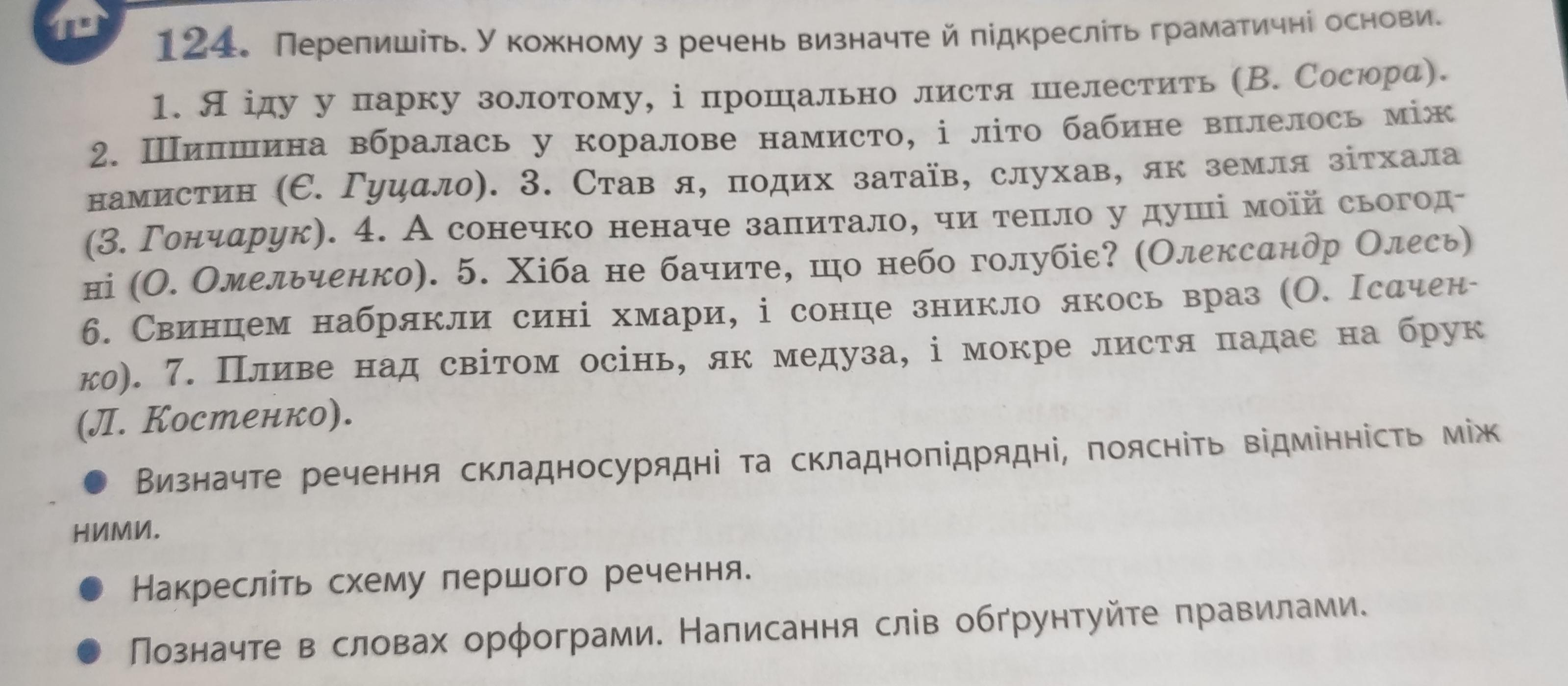 7. граматичні основи: "пливе осінь" та "листя падає"