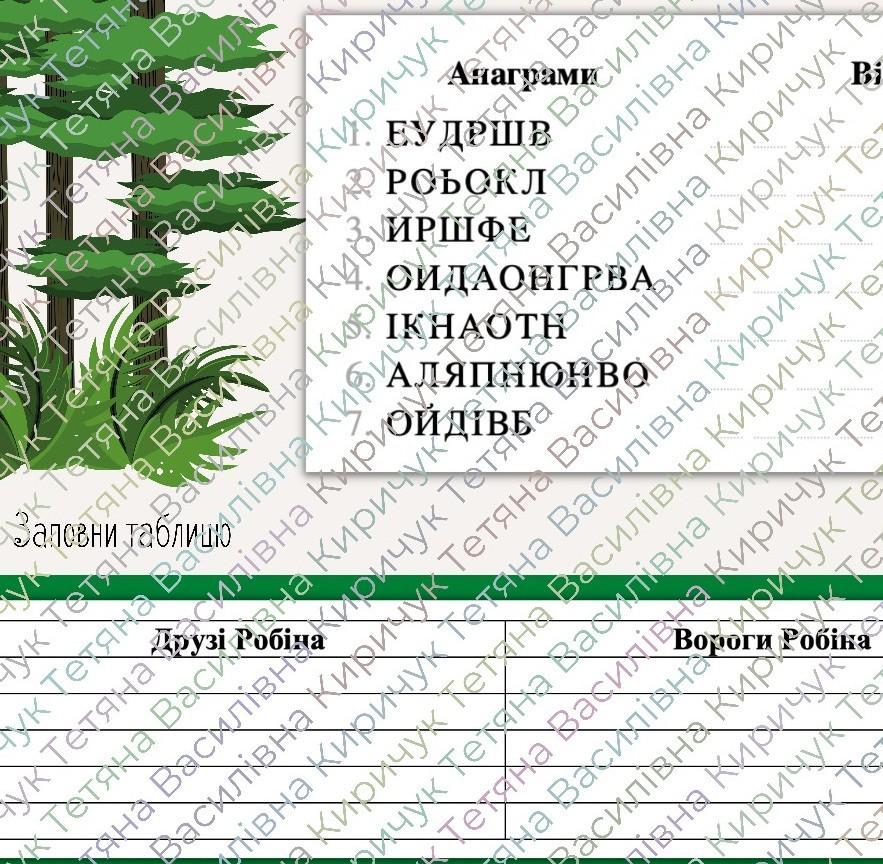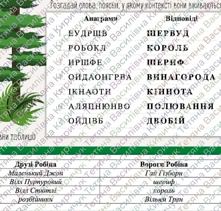 2 заповнити таблицю - друзі робіна гуда : .....; вороги робіна гуда : .....;