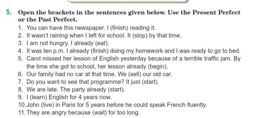 10.John was live in Paris for 5 years before he could speak French fluently.
