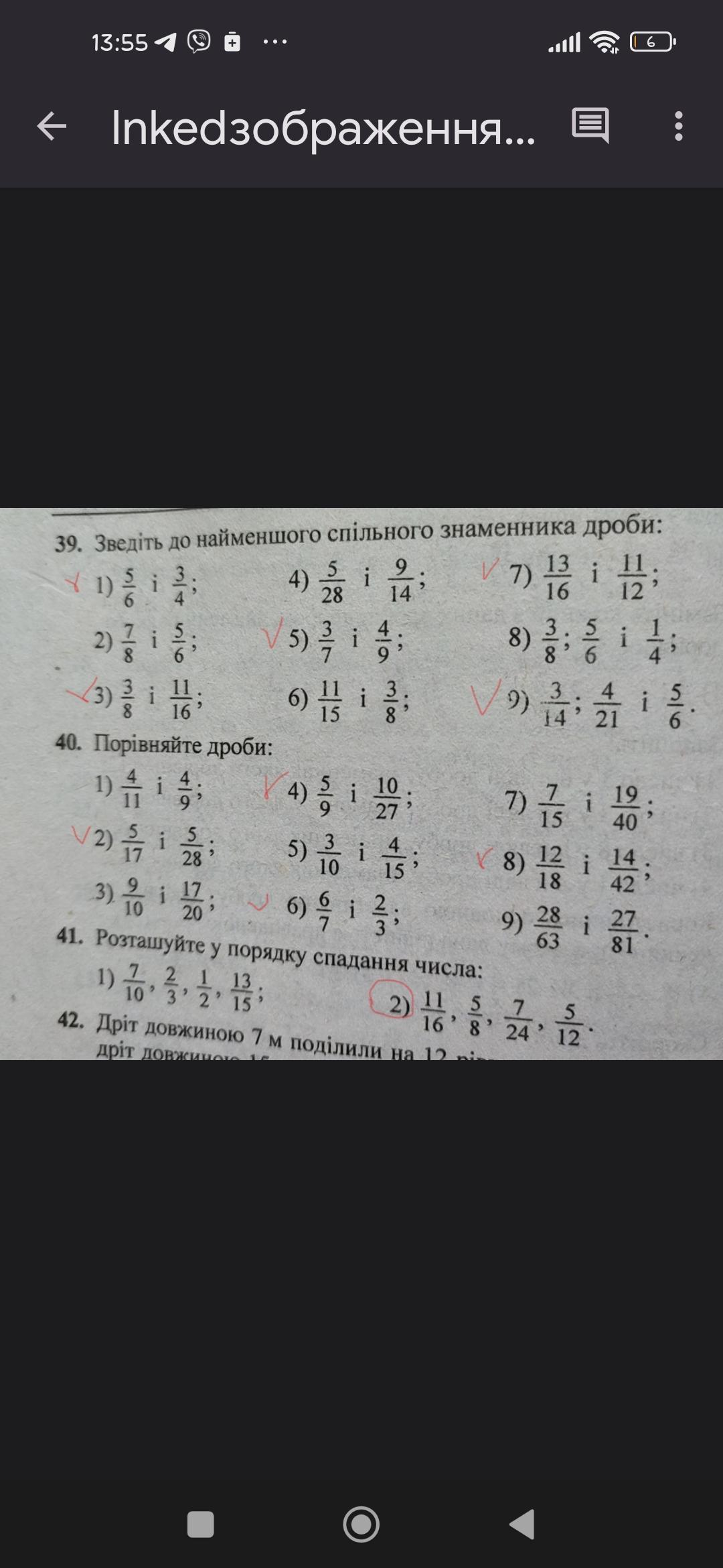 Пошаговое объяснение: номер 40, щоб порівняти дроби з різними знаменниками , слід звести їх до спільного знаменника і порівняти їх чисельники.