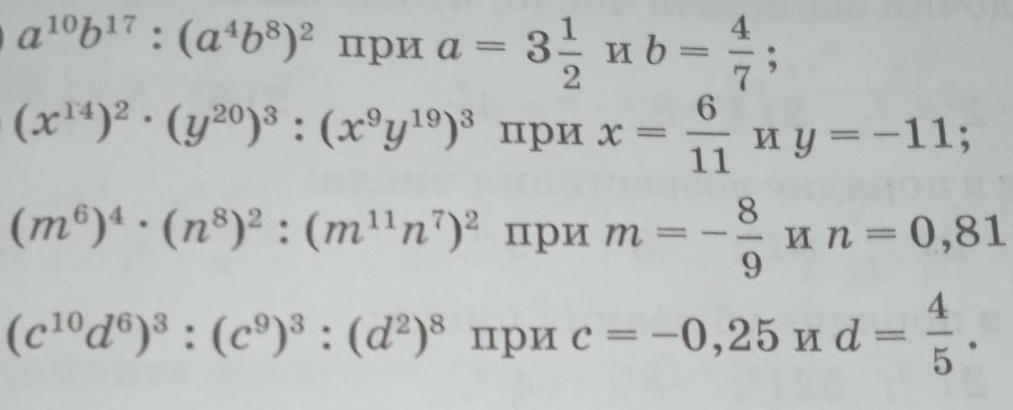 Все довольно легко, подставляй эти a, b на цифры, которые уже известны, и возводи их в степени, после, выполняешь действия деления или умножения, и все