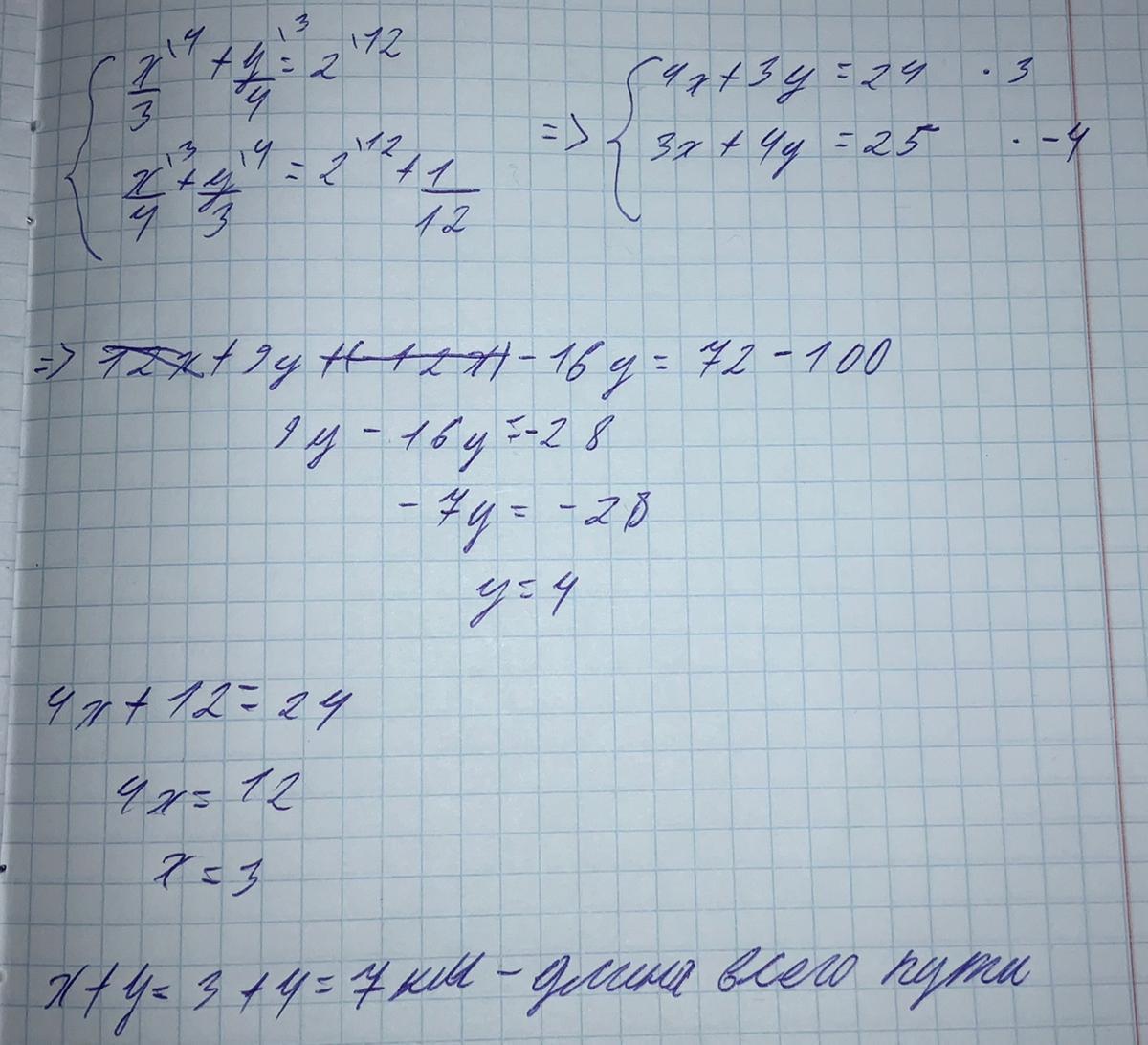Длина всего пути равняется 7км,первая часть пути-3км,вторая часть пути-4км.