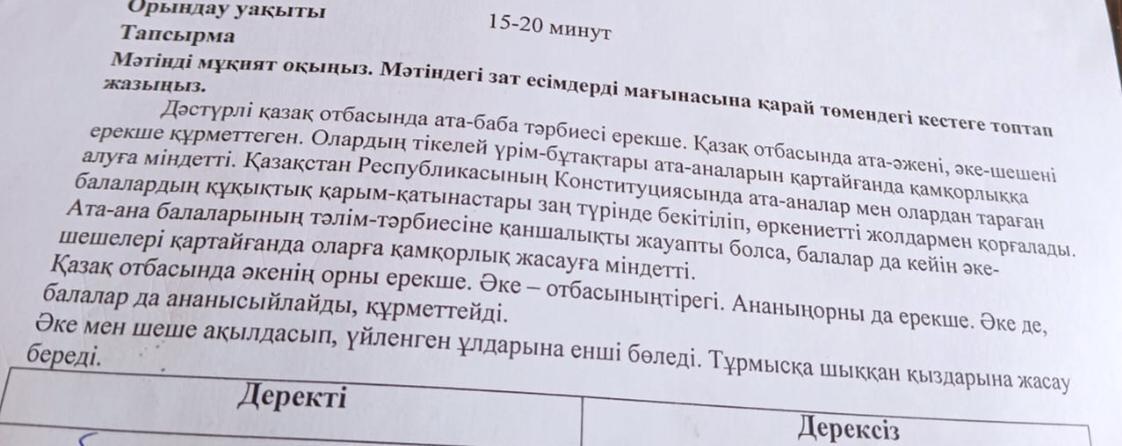 Деректі: қазақ отбасында ата-әжені, әке-шешені ерекше құрметтеген. Әке-отбасының тірегі