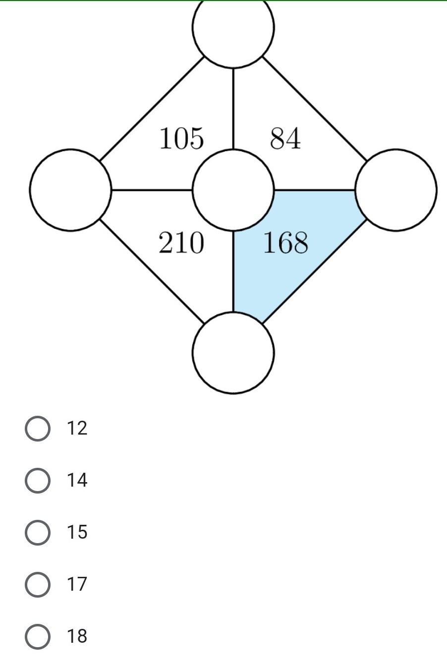 Числа 3,4,5,6,7 размещены в пять круга так, чтобы внутри каждого треугольника написано произведение чисел, расположенных на ее вершинах. Какова сумма трех чисел на вершинах закрашеного треугольника? Это кенгуру решите пжпжпдп.