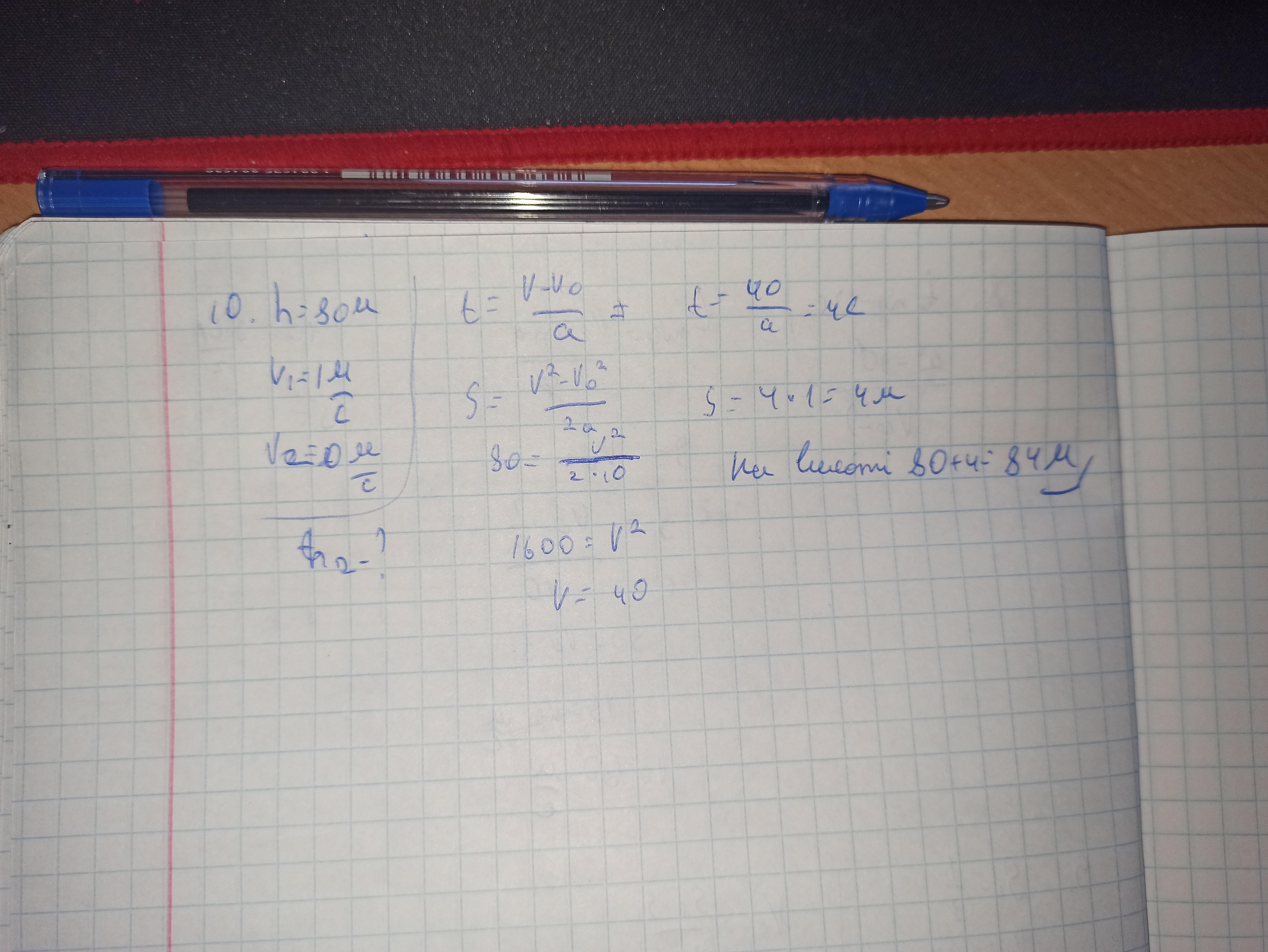 2. З нерухомого аеростата, що знаходився на висоті 80 м н Землi, скинули баласт. Після цього аеростат почав вертикально вгору рівномірно з швидкістю 1 м/с. На скільки підніметься аеростат за час падіння баласту? Дуже терміново!