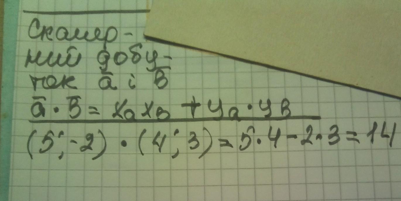 Знайдіть скалярний добуток вектора (5; -2) і (4;3).(Случайно нажал алгебру, а не геометрию, это вопрос по геометрии)