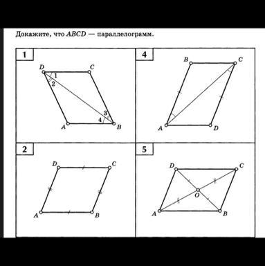 Четырехугольник является параллелограммом, если:Две его противоположные стороны равны и параллельны.Противоположные стороны попарно равны.Противоположные углы попарно равны.Диагонали точкой пересечения делятся пополам.