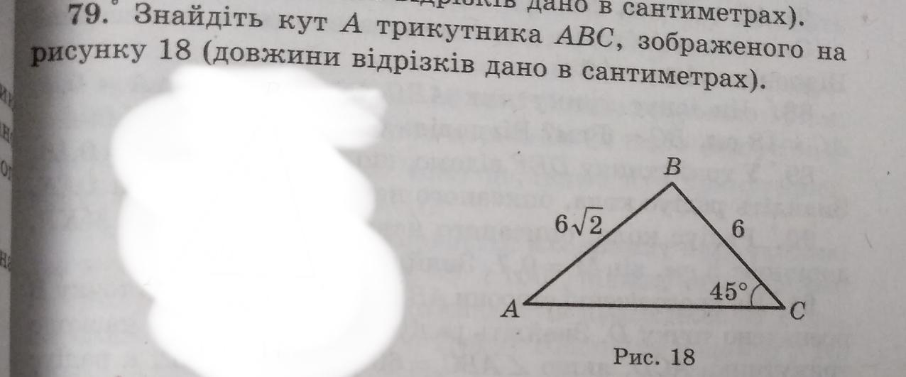 Знайдіть кут А трикутника ABC, зображеног