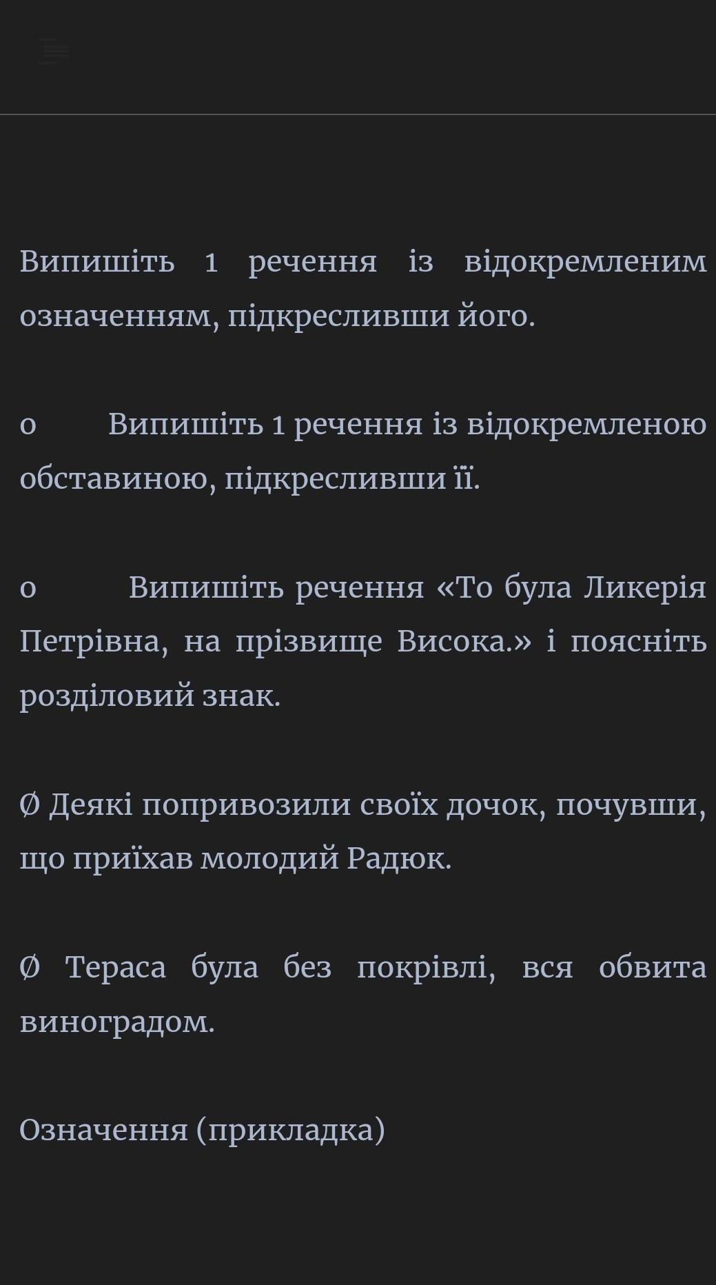 o Випишіть 1 речення із відокремленою обставиною, підкресливши її.
