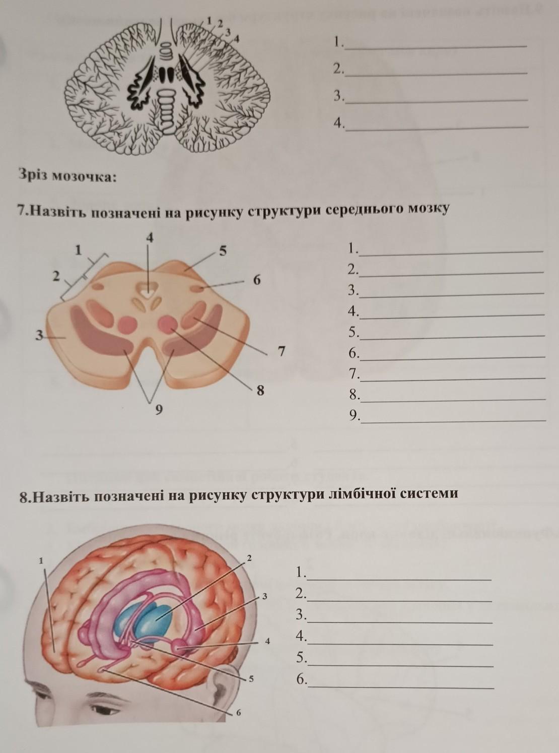 допоможіть будь ласка хто чим зможе даю 100 балів/ помогите пожалуйста кто чем сможет даю 100 баллов. Анатомія головного мозку/ Анатомия главного мозга. Назвіть структури мозочка, назвіть структури середнього мозку, назвіть структури лімбічної системи. / назовите структуры мозга, назовите структуры среднего мозга, назовите структуры лимбической системы.