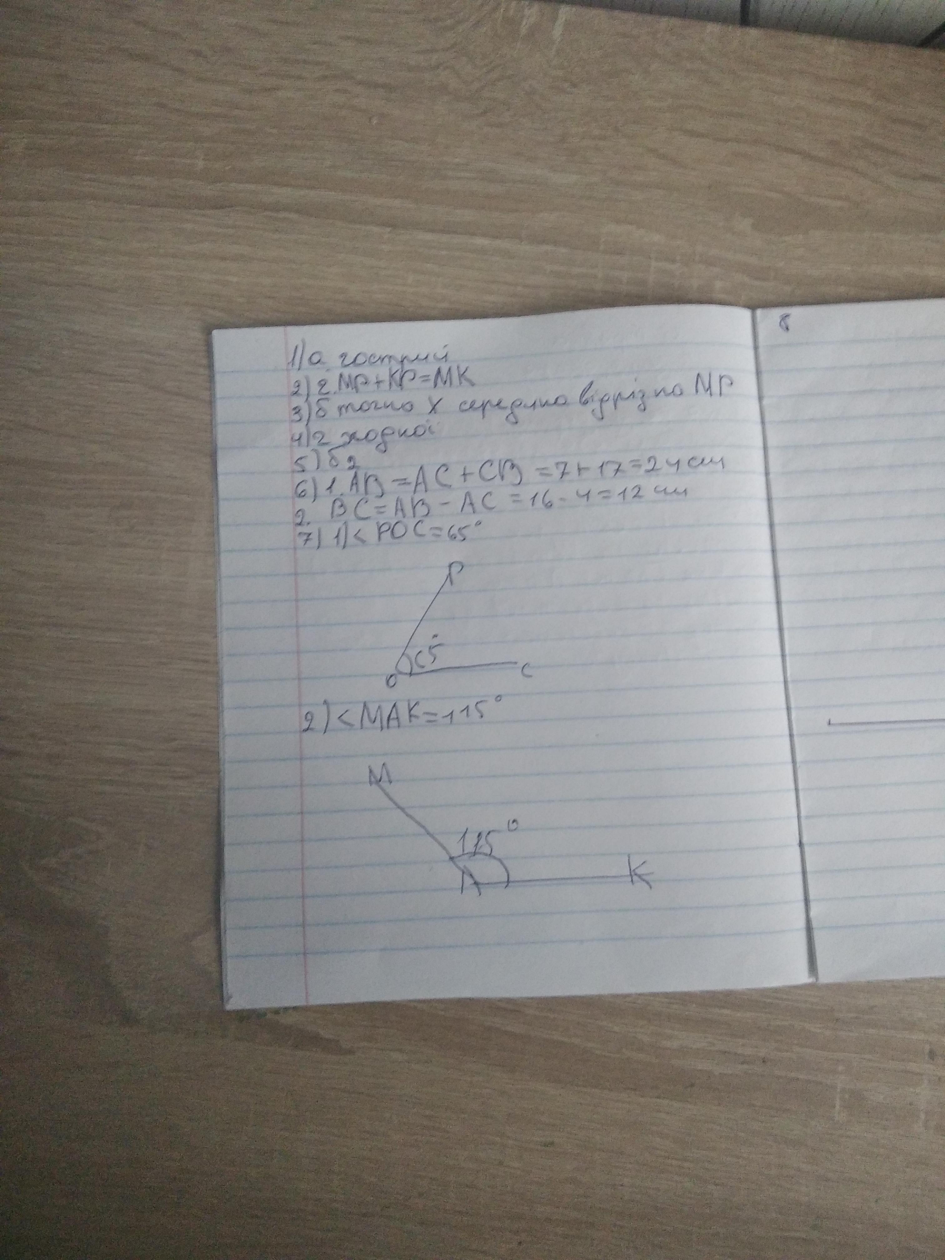 9.Побудуйте кут і запишіть його вершину та сторони: