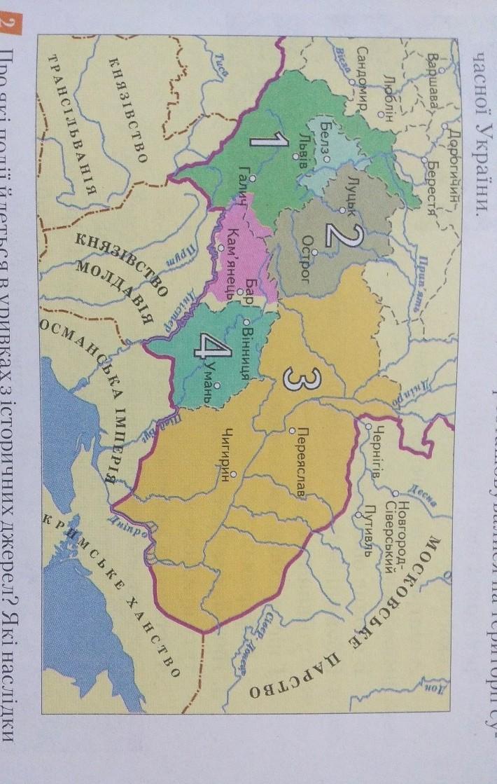 Розгляньте карту. Запишіть у зошит назви позначених цифрами воєводств Речі Посполитої, які розташовувалися на території сучасної України.