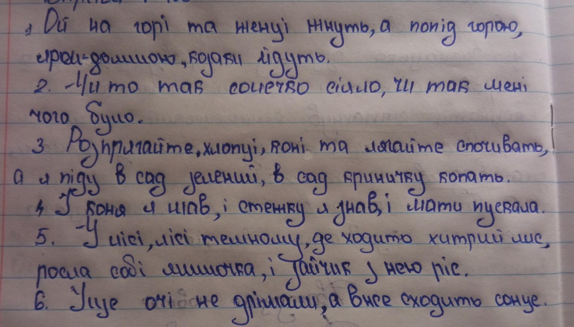 ПРодовжте цитати, які за будовою є складносурядними реченнями. 1. Ой на горі та женці жнуть, а [ ... ]. 2. Чи то так сонечко сiяло, чи [ ]? *** 3. Ой я дiвчина Полтавка, а [ ... ]. 4. Розпрягайте, хлопці, коні та лягайте спочивать, а [ ... ]. 5. I коня я мав, і стежку я знав, i [ ... ]. 6. ... Росла собі ялиночка, i [ ... ]. 7. Iще очі не дрімали, а ]. 8. Там овечки покотились, а [ ... ].