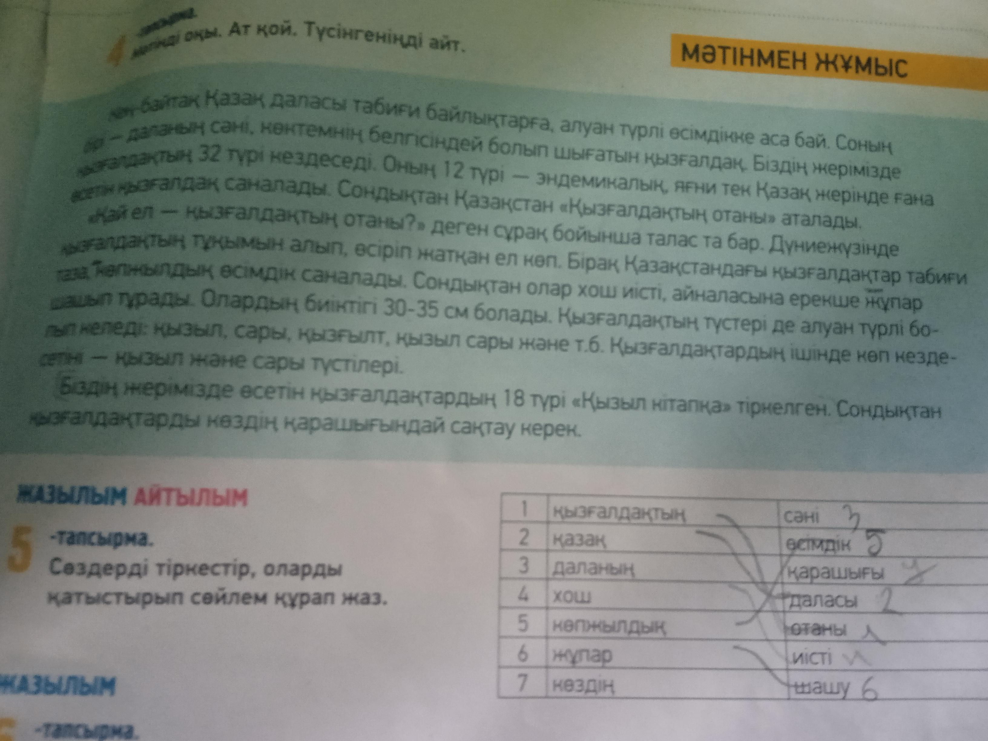 Сөздерді тіркестір, оларды қатыстырып сөйлем құрап жаз.