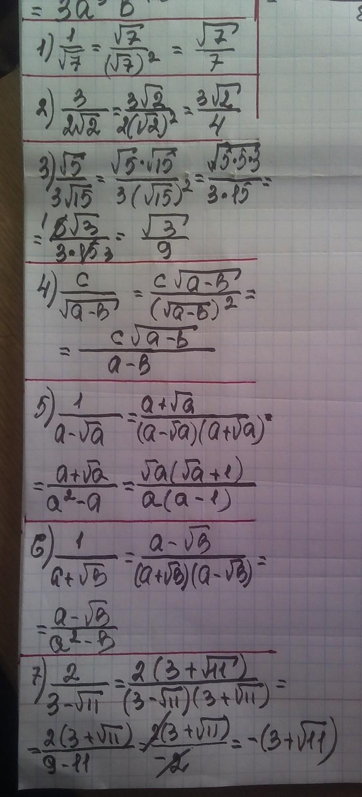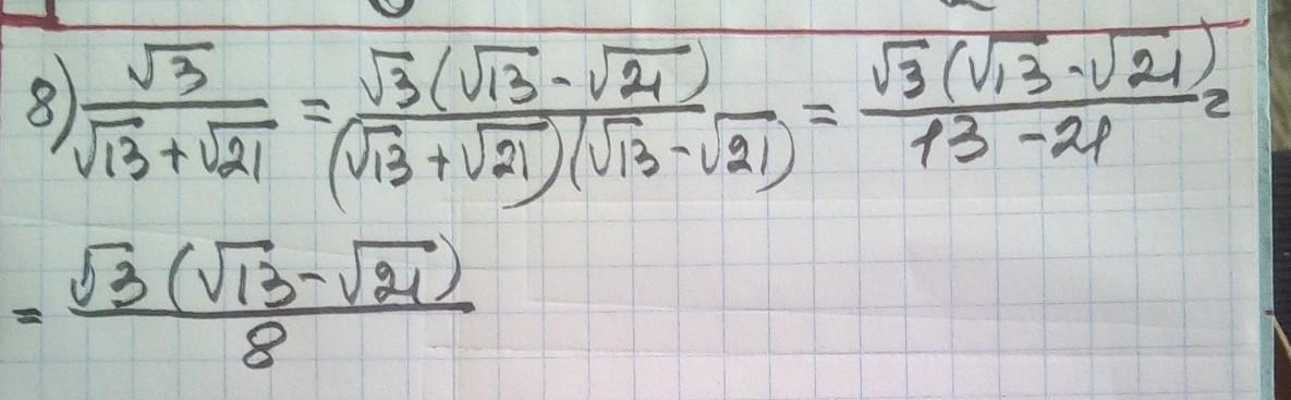 Задание. Избавиться от иррациональности 1) 2) 3) 1 3 2√2 √√5 3/15 C ба-в в знаменателе: 1 5) 6) 7) 8) a √oi 1 √ši a+ 2 3-Л 53 13 +√21