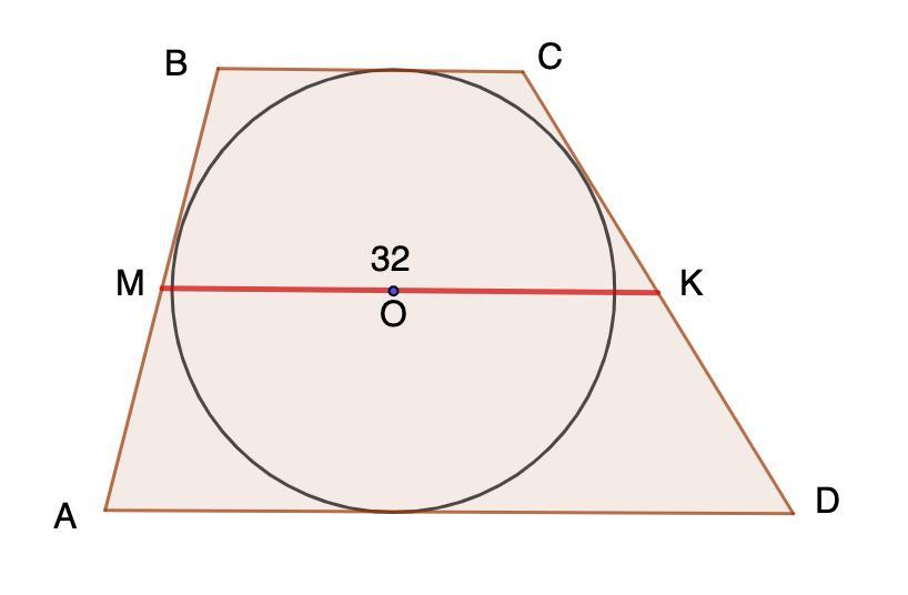 ⇒ BC + AD = 2 MK = 32 · 2 = 64