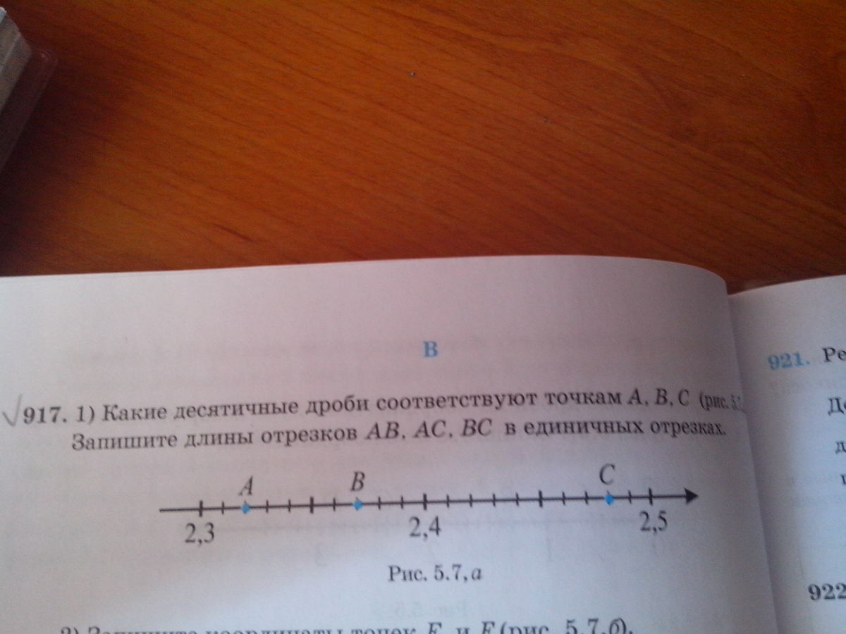 Какие десятичные дроби соответствуют точкам A,B,C. Запишите длины отрезков AB,AC,BC в единичных отезках