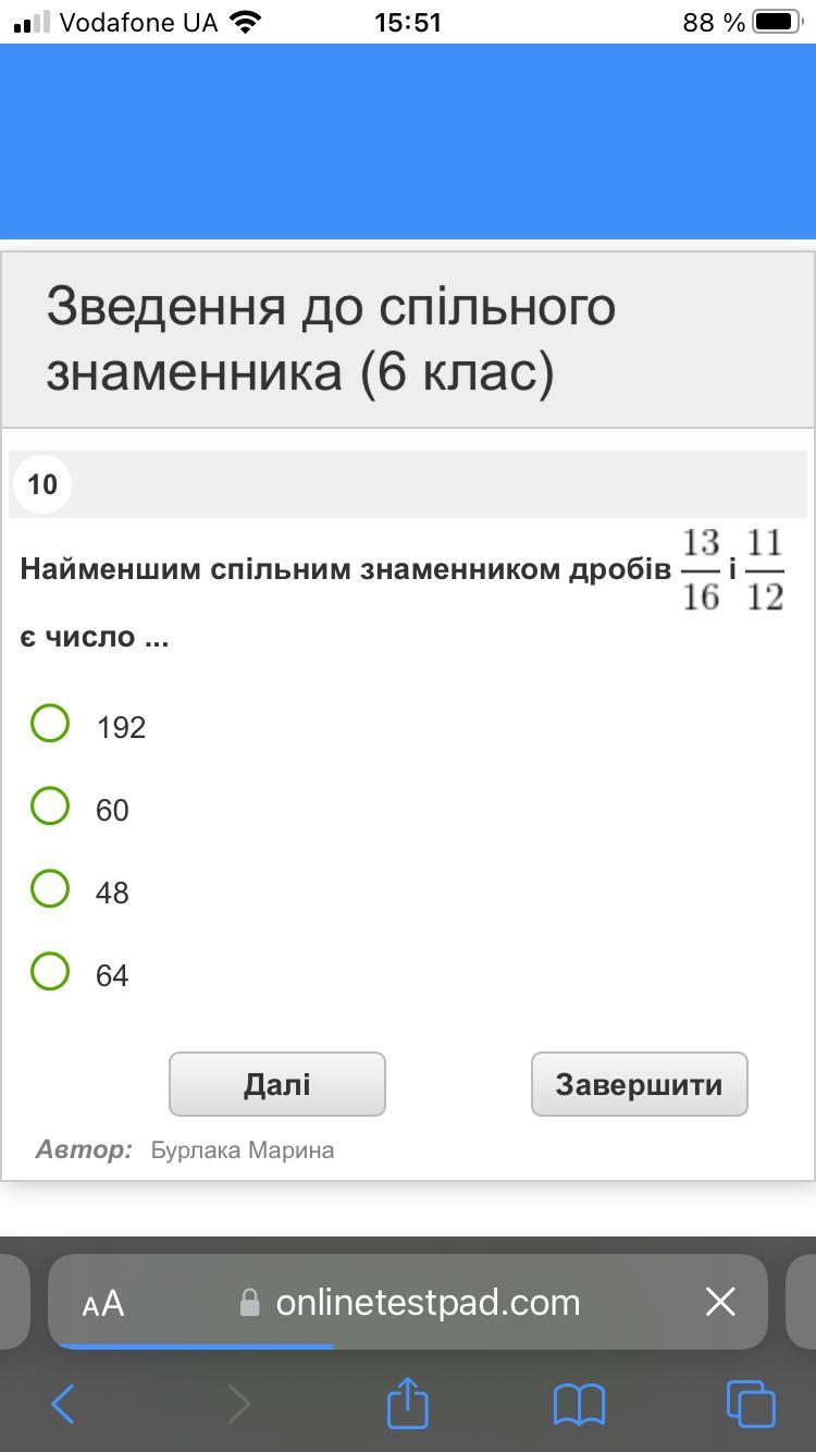 наименьший общий знаменатель дробей = 48: