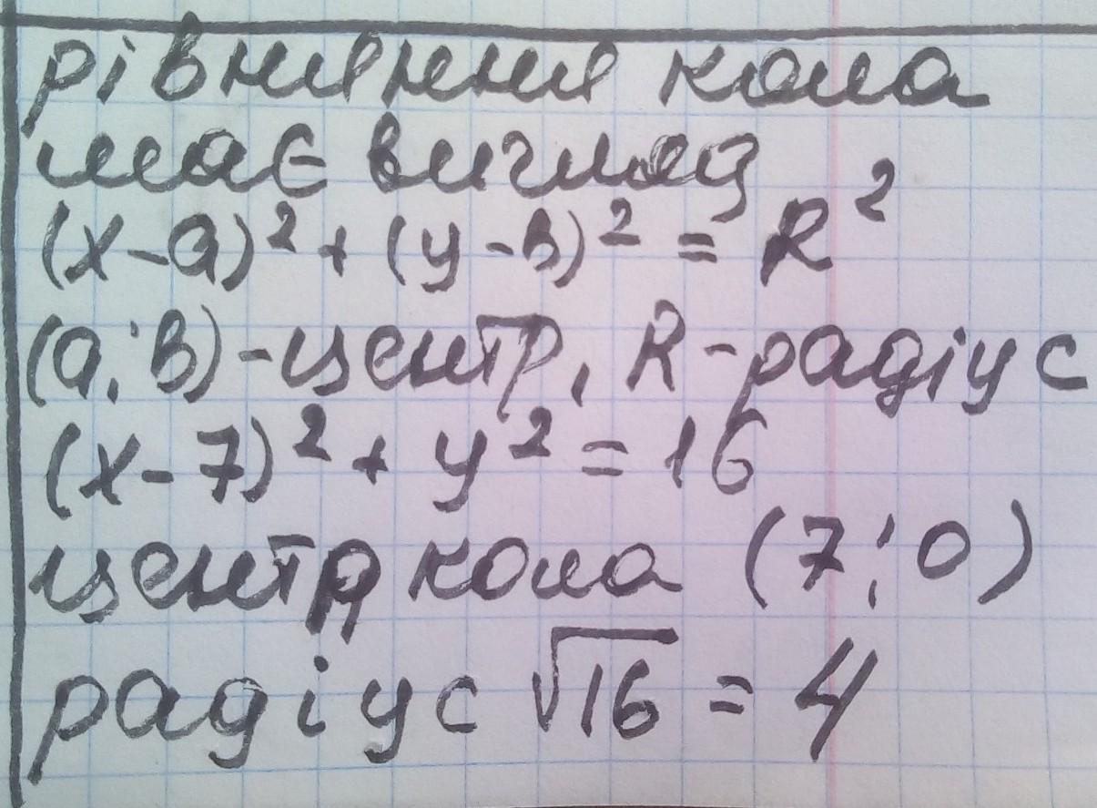 Ответ: радіус 4 центр (7;0)