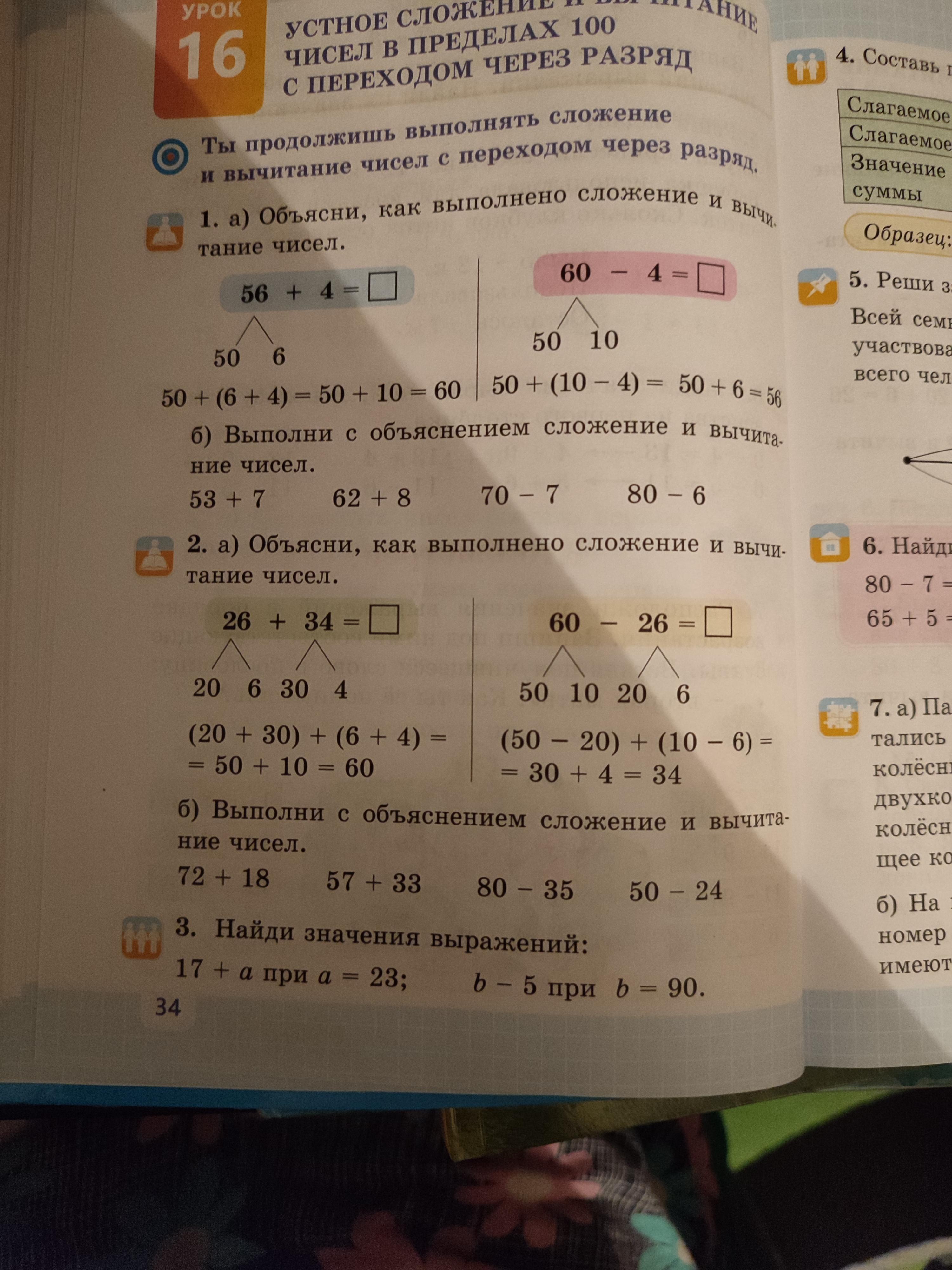 а) Сложение и вычитание чисел выполняется поочерёдно, сначала десятки, а потом единицы.
