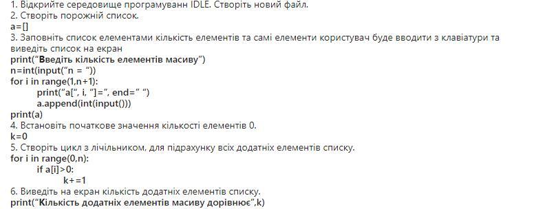 print("Кількість додатніх елементів масиву дорівнює", k)