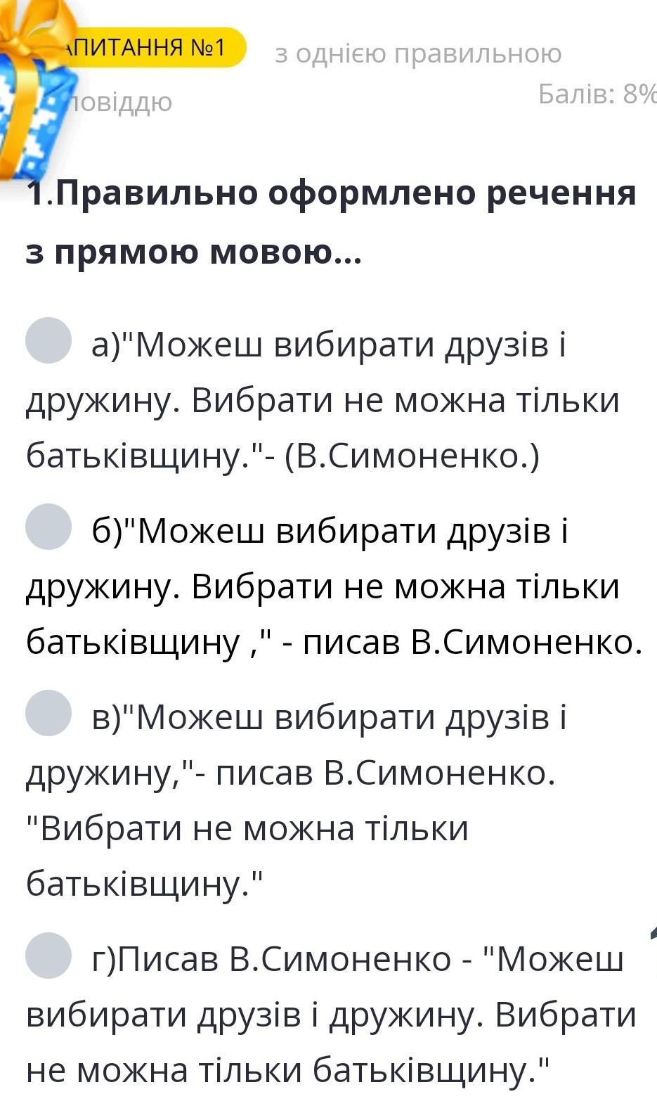 ,,В,, це неправильна відповідь!Навіщо мені брихати?