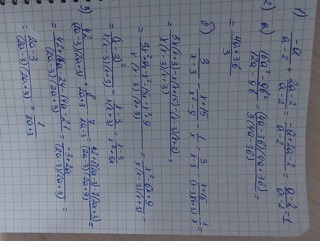2) b) 3/x-3 — x+15/x²-9 —1/x=(x+3)3x-(x+15)x- x²-9 =3x²+9x-x²-15x-x²+9/x(x-3)(x+3)=x²-6x+9/x(x+3)(x-3)=