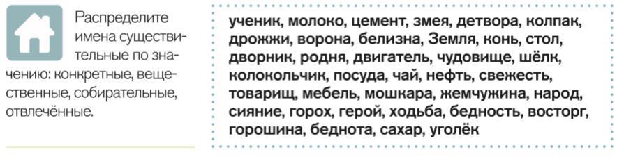 Распределите имена существительные по значению.