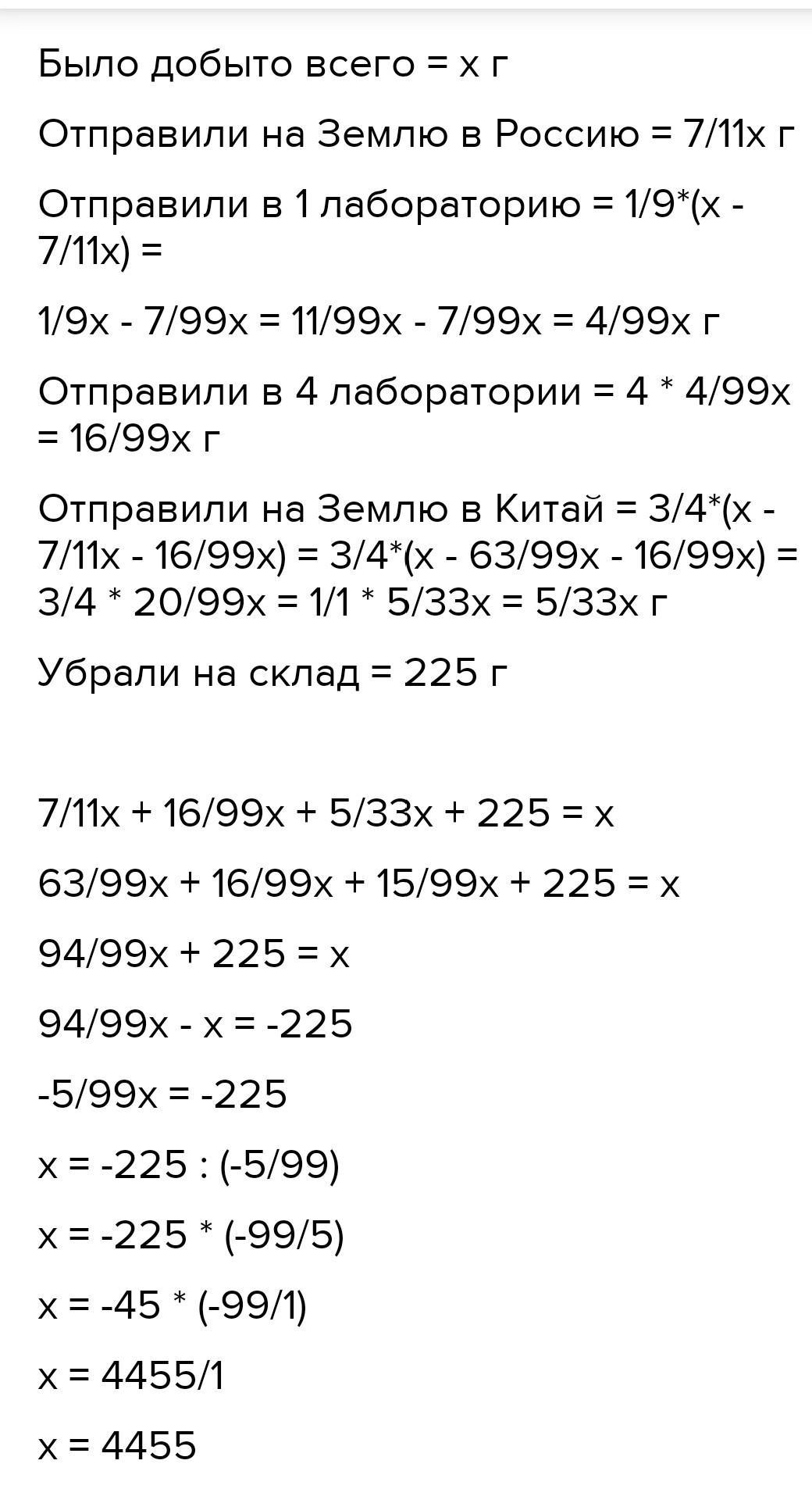 225 граммов породы убрали на склад. Сколько граммов лунной породы было добыто