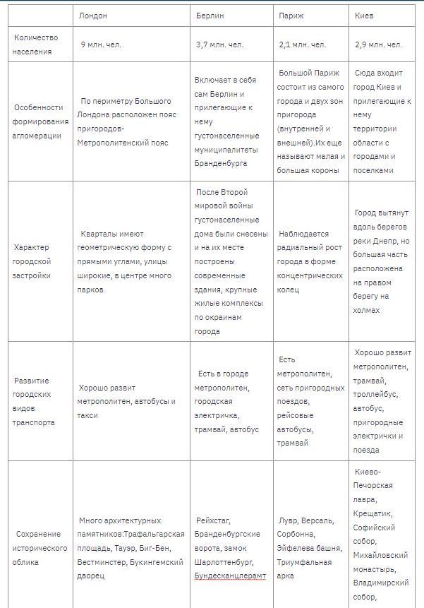 - Лондон Берлін Париж Київ схожість і відмінність сучасного розвитку міст.Таблиця дана нижче у додатку