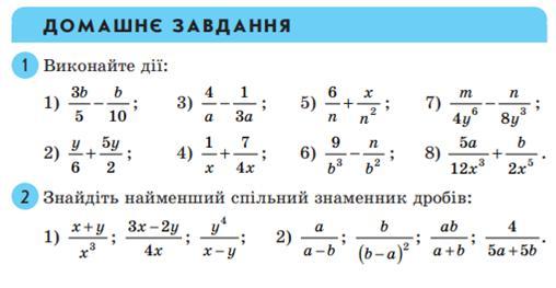 Додавання і віднімання раціональних дробів з різними знаменниками: