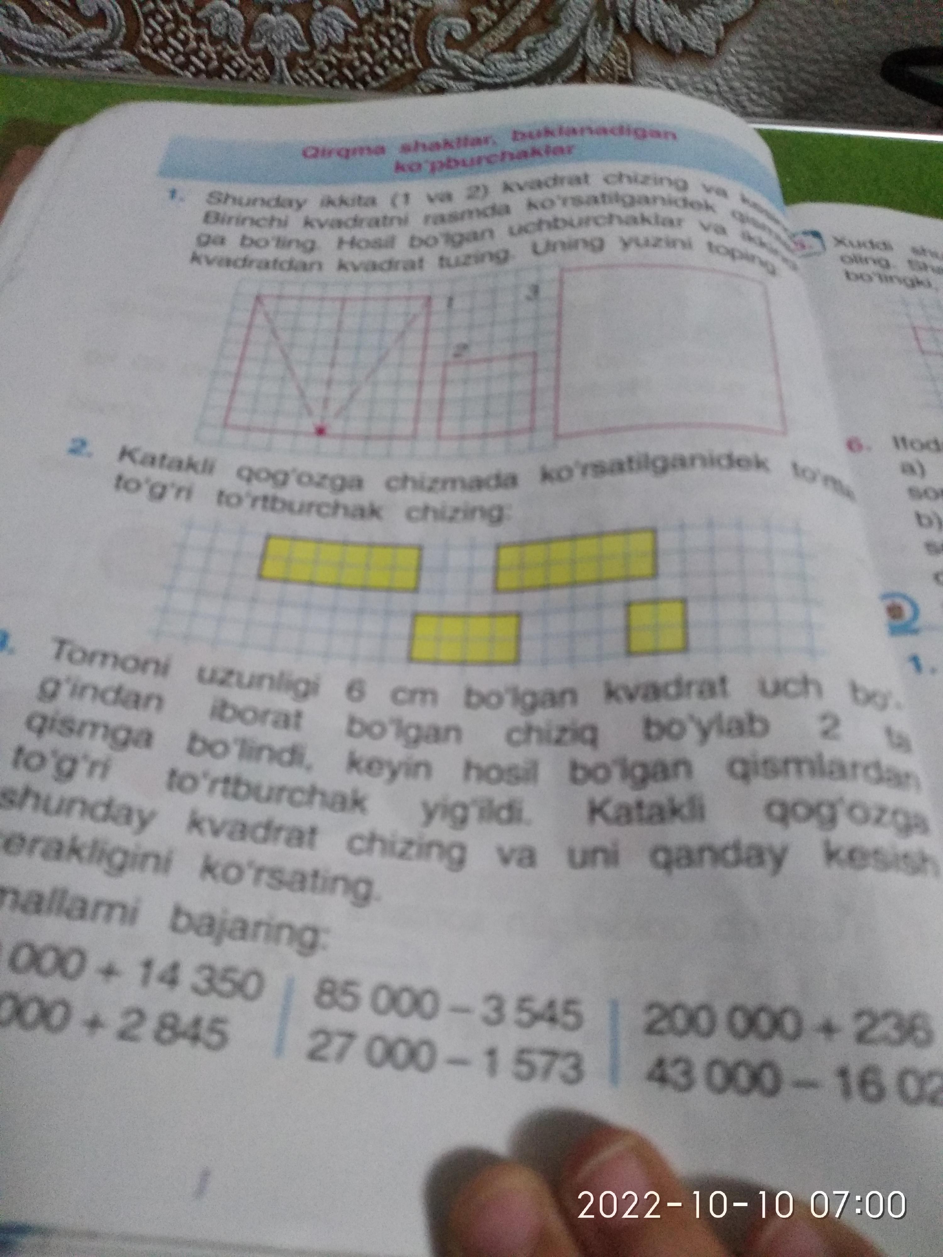 bunda eni 6 ta katak bo‘yi 6 ta katakdan iborat kvadrat chizing