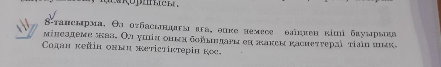 Менын апкемнын аты атын жаз.Атын жаз оте адемы,акылды,парасатты кыз.атын жаз мейырымды кыз унемы комектесып журеды.Озы кошеге шыкканда мены де ала шыгады.Улкенге курмет кышыге ызет корсетеды.Атын жаз бокспен айналысады.Коптеген медаль,дипломдары бар.Бокспен айналысып жургеныне 2 жыл болды.Мены унемы коргап журеды.