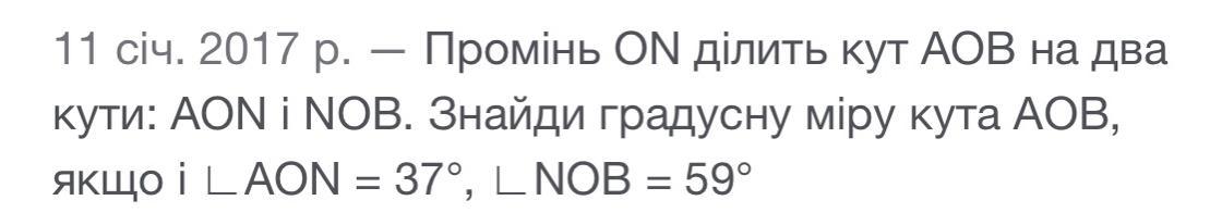 промінь ОN ділить кут аов на два кути знайдіть кут aon якщо кут аов 140° кут NOB 6/7 градусів кут aob