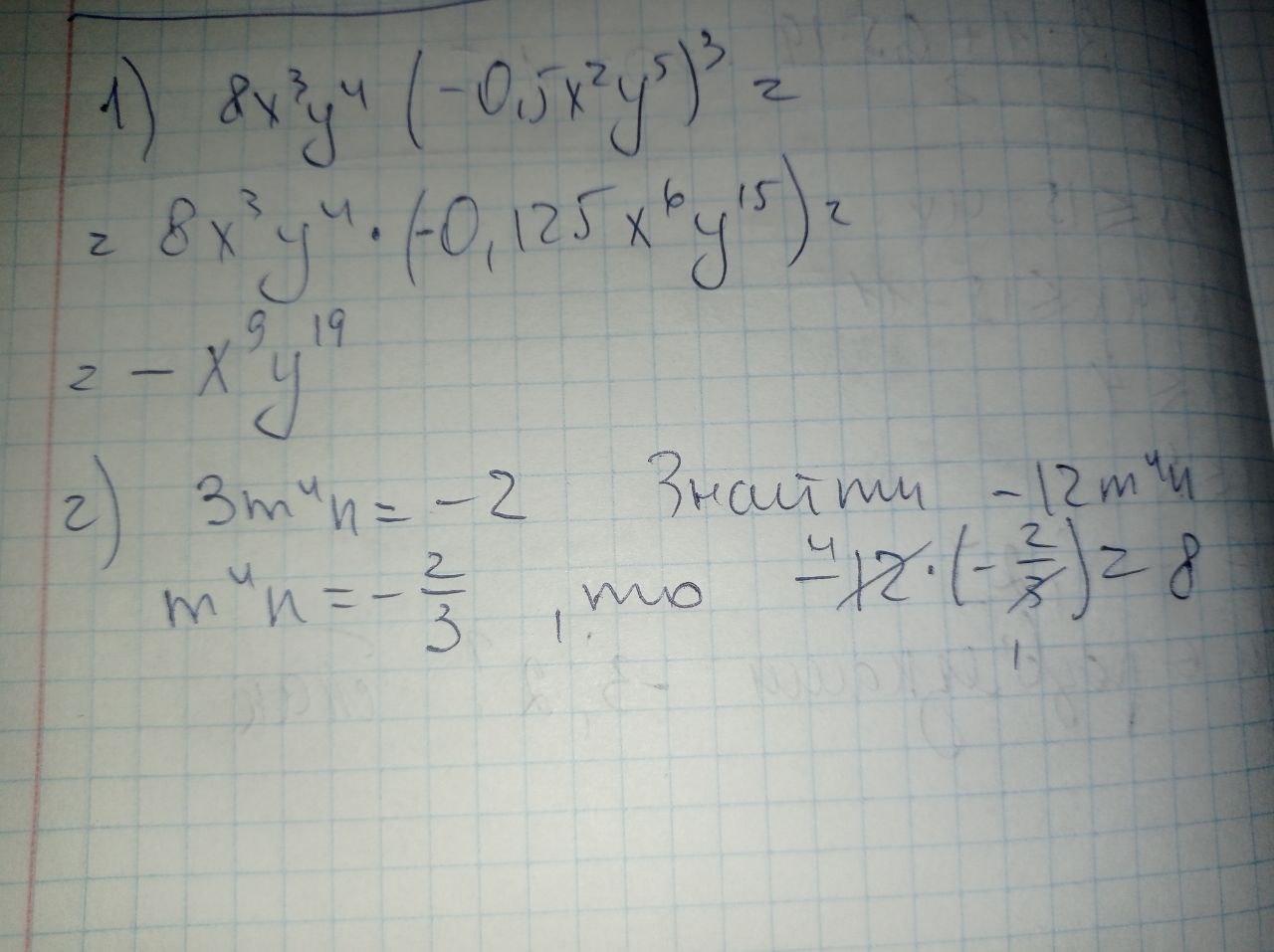2) відомо, що 3 m⁴ n= -2 знайдіть значення виразу: -12 m⁴n