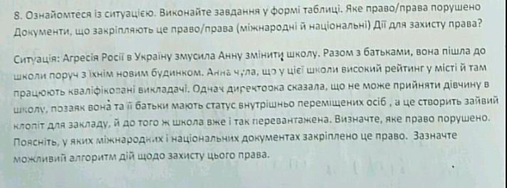 Порушено право на навчання.Неважливо хто ти є,внутрішньо переміщена,маєш ВІЛ або ти сирота.Вони також люди!