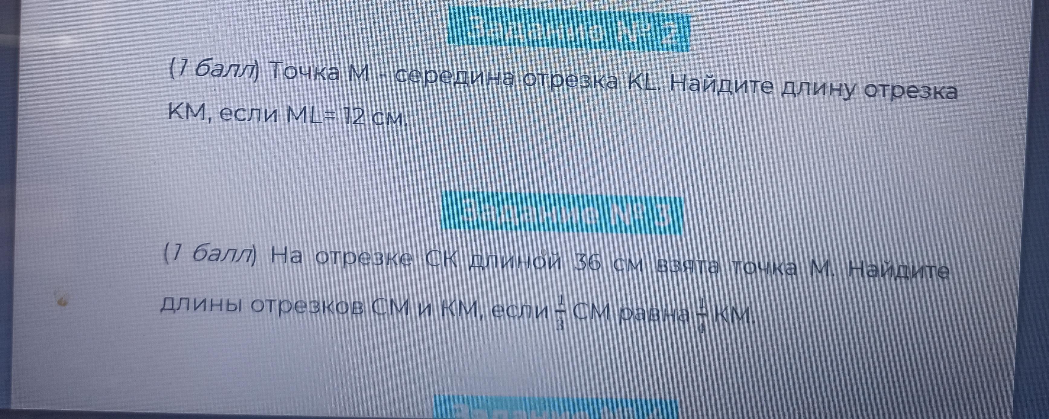 Если точка М средина отрезка KL,ML = 12 cm то KM=12+12=24