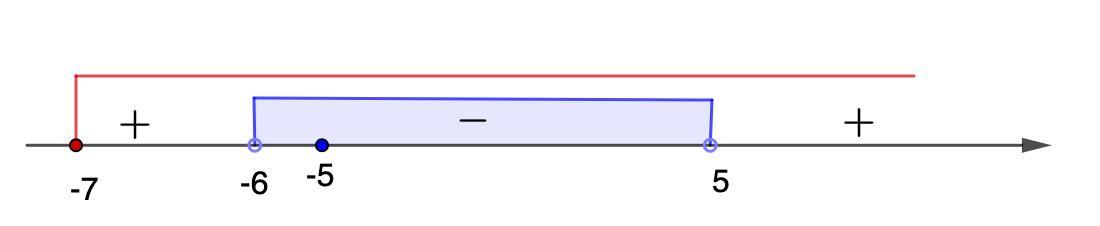 Отметим данные точки на числовой оси и определим знаки на промежутках.