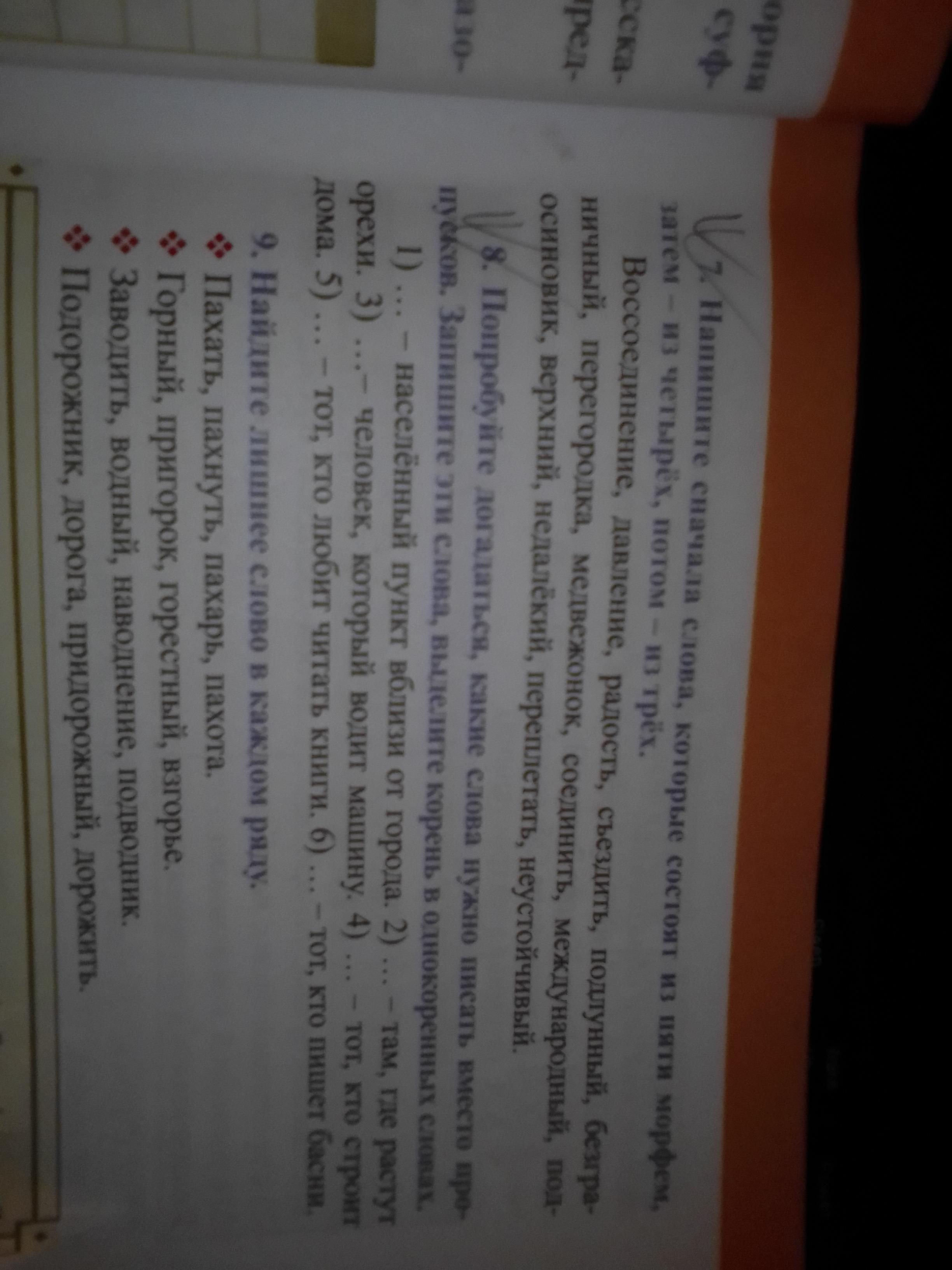 Ответ:1) деревня/посёлок.2) орешник. 3) водитель 4) строитель. 5) книгочей 6) баснописец.