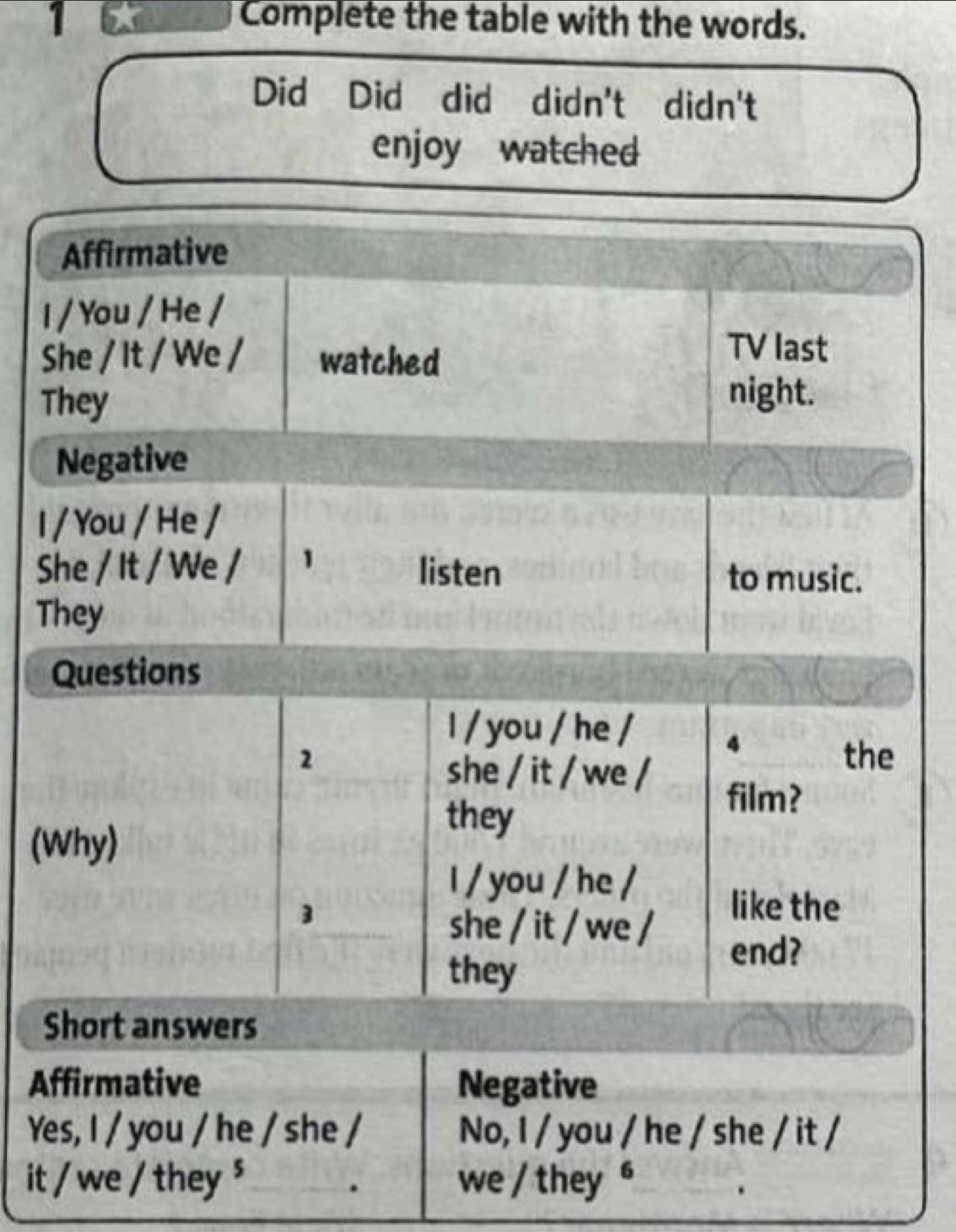 2)Did, enjoy 3)Did4)Did5)Didn't
