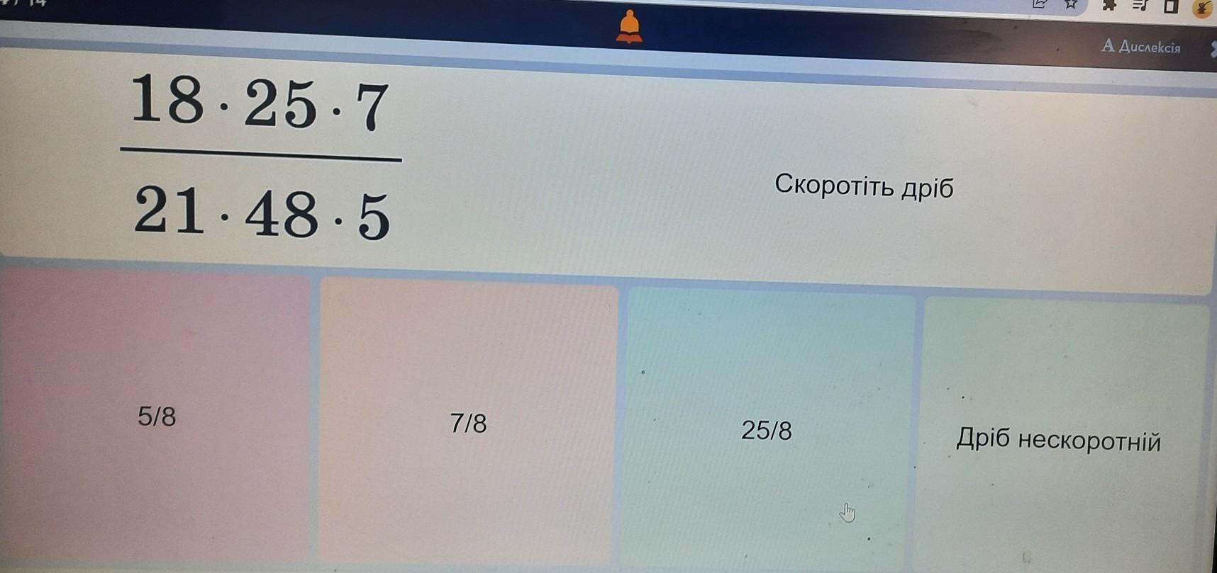 (18*25*7) / (21*48*5) => сокращаем на 3, 5, 6, 7 => 5/8.