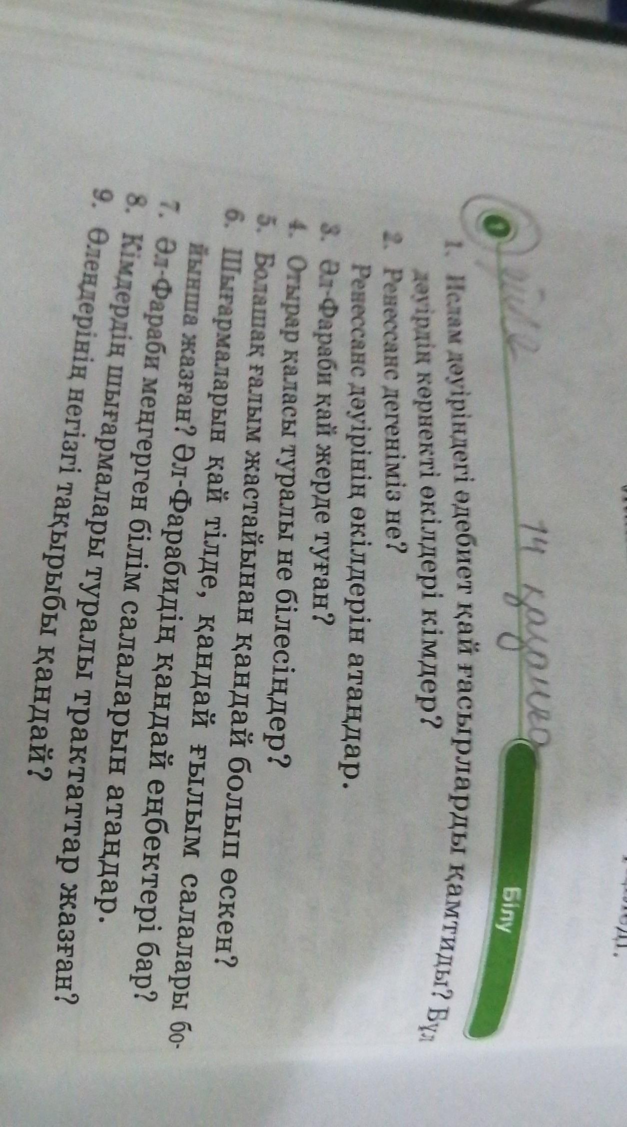 Білу 1 7. Әл-Фараби меңгерген білім салаларын атаңдар. 8. Кімдердің шығармалары туралы трактаттар жазған? 9. Өлеңдерiнiң негiзгi тақырыбы қандай? Срочно пж дам 50баллов